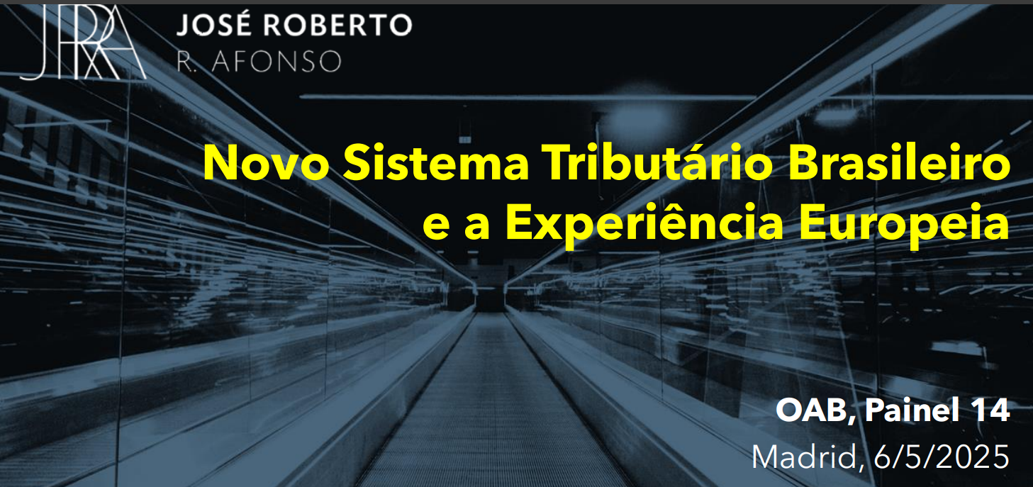 Novo Sistema Tributário Brasileiro e a Experiência Europeia apresentação realizada por José Roberto Afonso em Seminário Internacional Infraestrutura, Segurança Jurídica e Jurisdição Constitucional (6/2025).